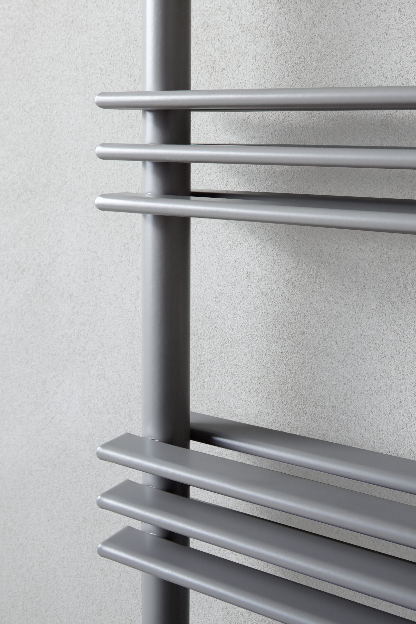 Tiefe Geometrien, die die häusliche Intimität ordnen: eine perfekte Synthese aus Ablagefläche und thermischem Komfort: ein stilvolles Detail, das den Badbereich mit schlichter Eleganz organisiert