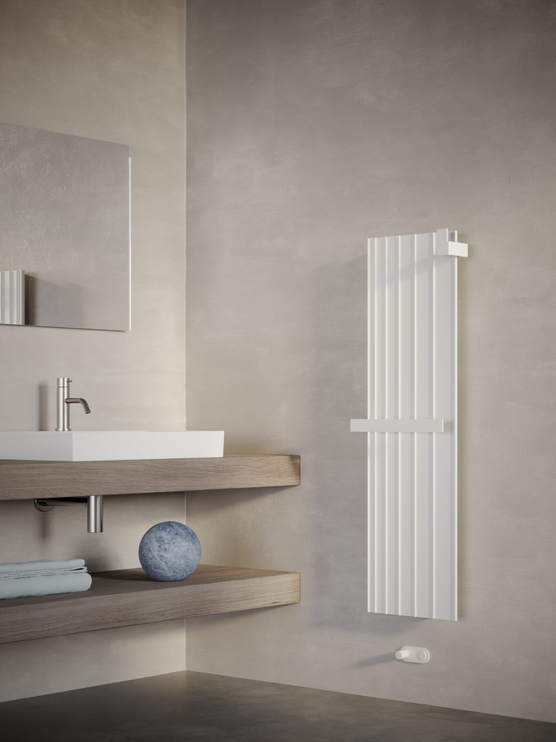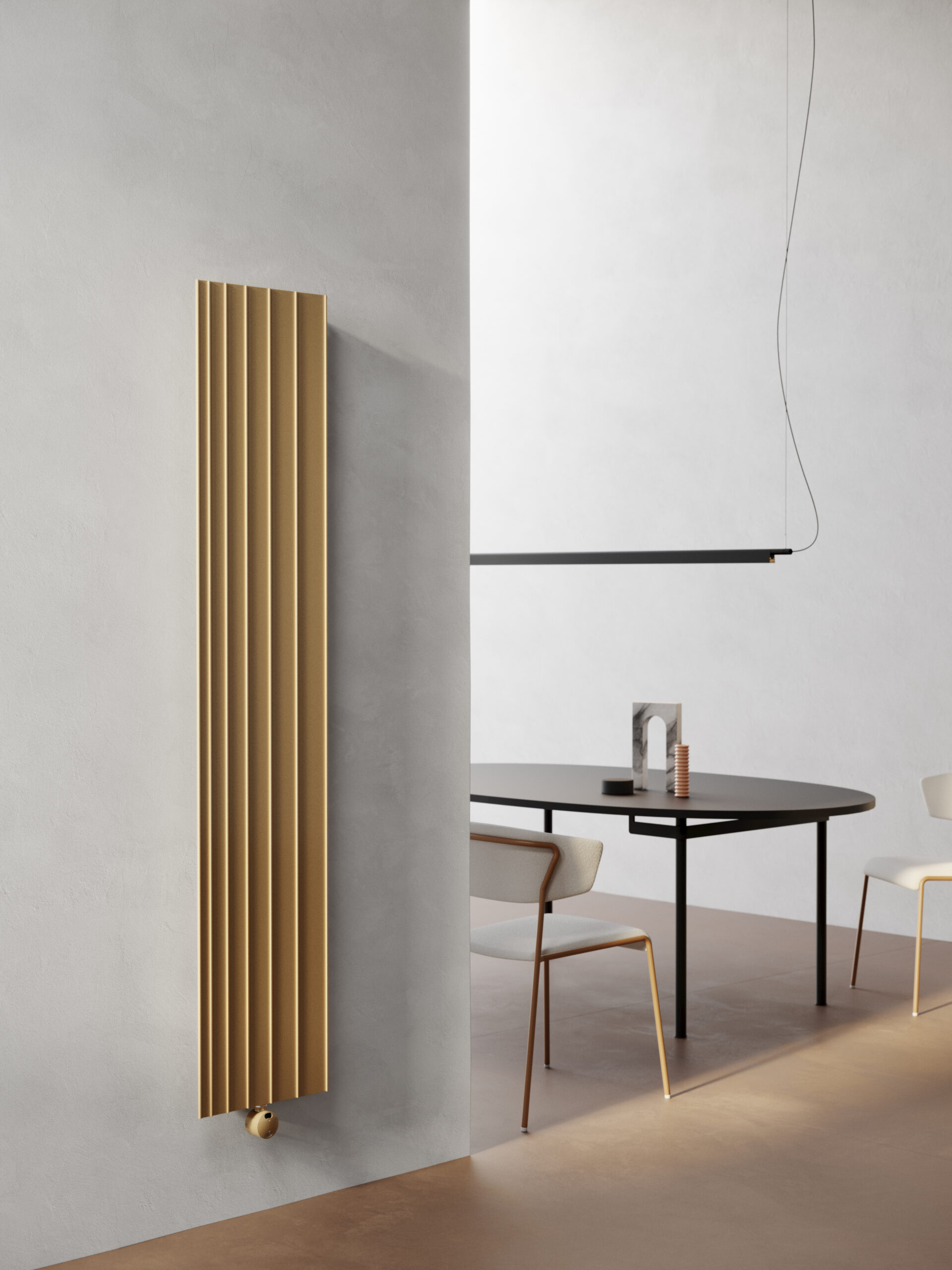 Die Ästhetik des klassischen Heizkörpers, verwandelt in die absolute Reinheit von Linien und Geometrien, die in dynamischer Perspektive in die Zukunft weisen